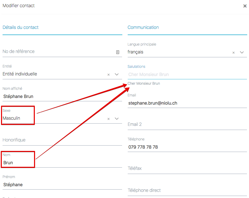 Damit die Briefanrede korrekt generiert wird, müssen folgende Felder ausgefüllt sein: