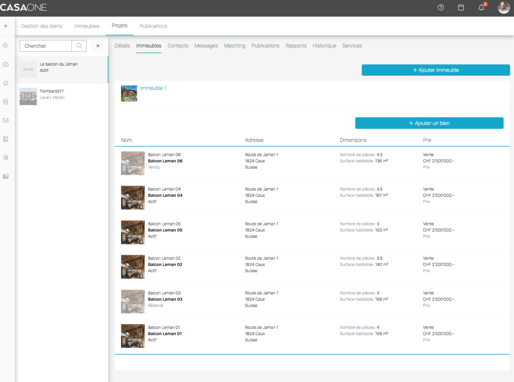 In CASAONE lassen sich neben einzelnen Objekten auch Liegenschaften und Projekte verwalten. Diese Funktionalitäten können Sie verwenden, wenn Sie mehrere Einheiten innerhalb einer Liegenschaft vermarkten oder eine Projekt-Webseite direkt aus CASAONE erstellen möchten.