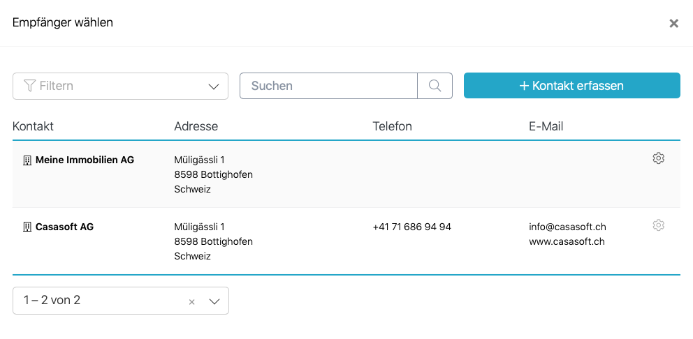 Wenn Sie auf den Firmennamen klicken, erhalten Sie eine Übersicht über alle verknüpften Kontakte der Firma.