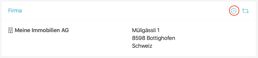 Nun wird im Kontaktprofil die verknüpfte Firma/Organisation angezeigt. Klicken Sie auf das Minus-Symbol, wenn Sie die Verknüpfung wieder auflösen möchten.