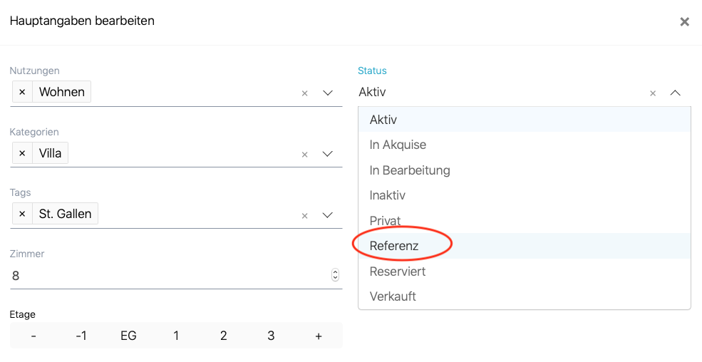 Hinweis: Referenzobjekte können nicht auf anderen Immobilienportalen publiziert werden.
