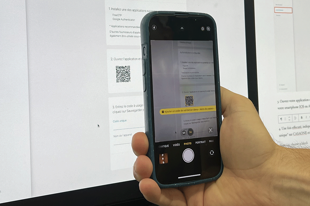 3. Öffnen Sie Ihre Authentifizierungs-App (Google Authenticator, …) auf Ihrem IOS- oder Android-Smartphone und scannen Sie den angezeigten QR-Code.