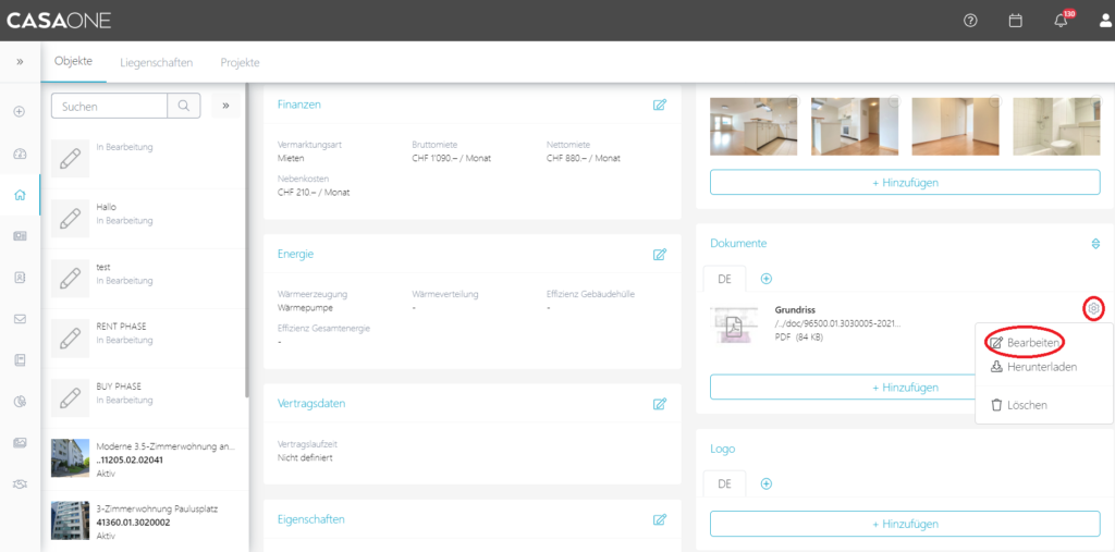 Lorsque vous avez créé un objet dans la Gestion des biens de CASAONE, il vous est possible de générer un flyer ou une documentation en format PDF.