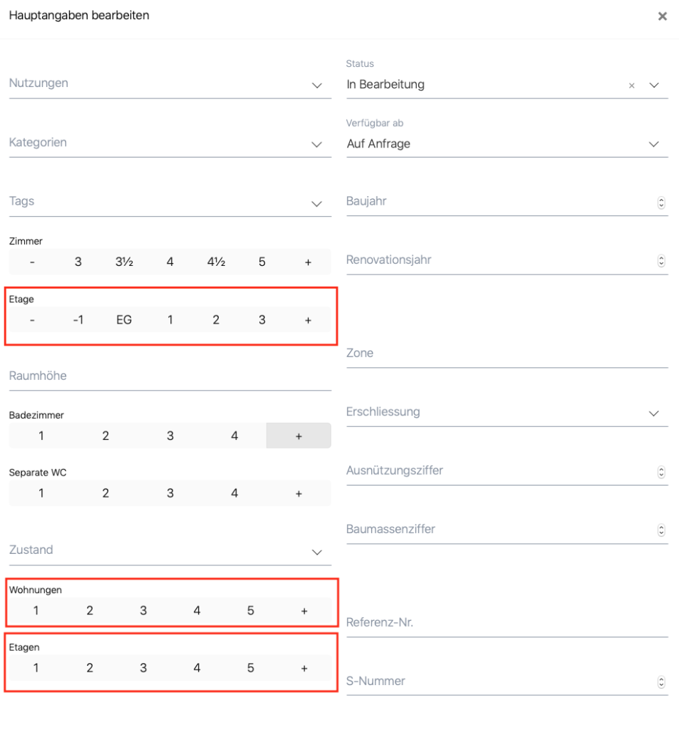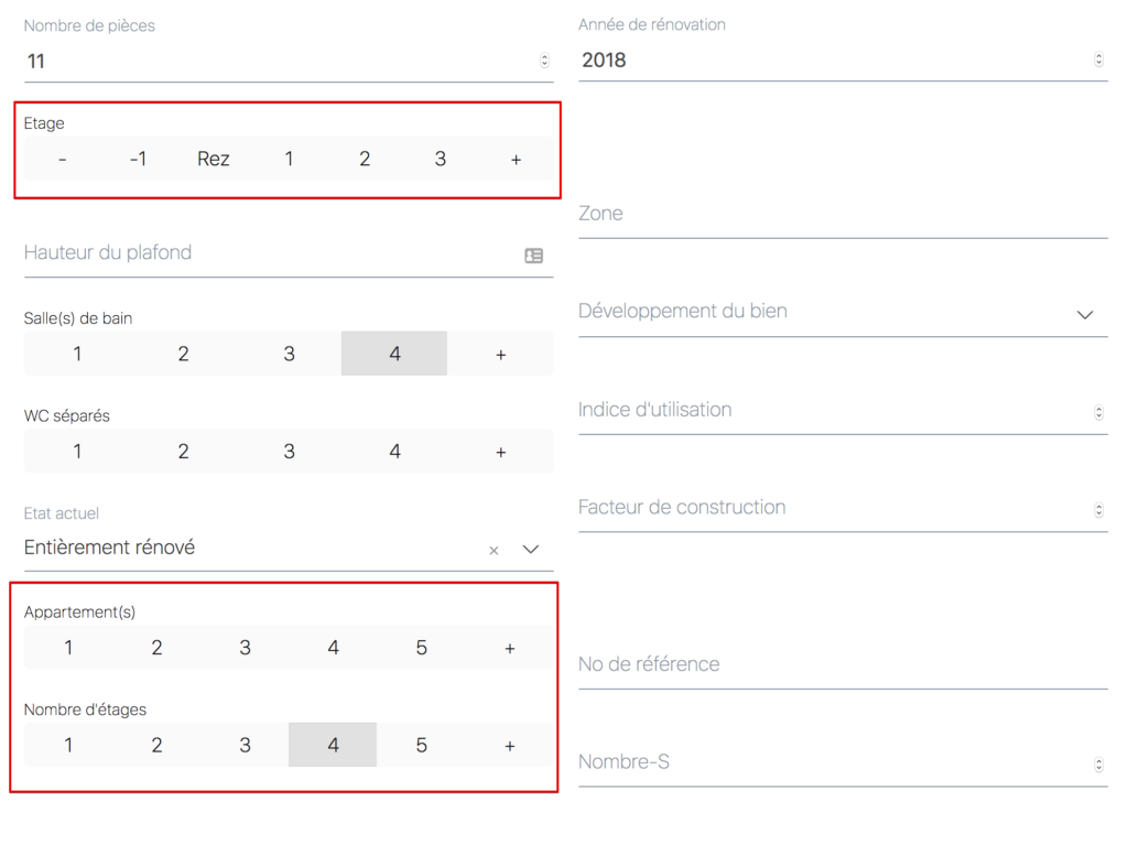 Lorsque vous enregistrez un nouvel objet, dans les détails de l'objet vous trouvez les champs Étage et Nombre d'étages.