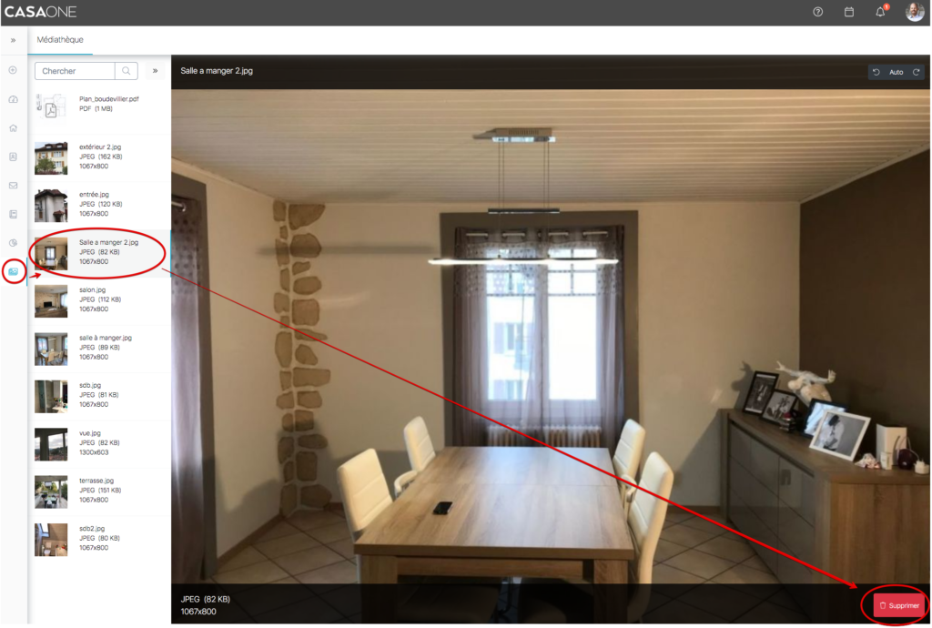 Remarque: si le média que vous essayez de supprimer est lié à un élément tel qu’un bien ou un contact, ce lien est ensuite perdu. Lors de la suppression, un avertissement vous en informera.