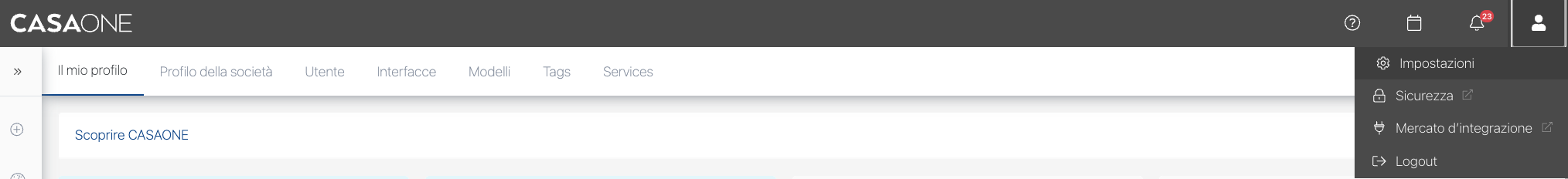 1. Vai su "Impostazioni" nel menu utente di CASAONE.